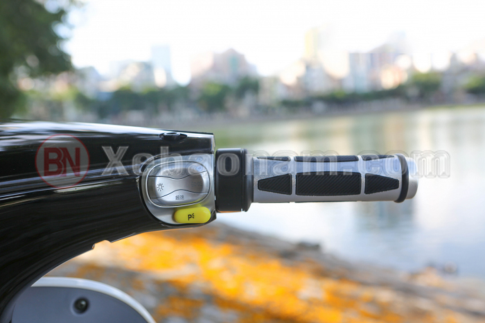 Còn phần cụm công tắc thì được thiêt kế nằm gọn ở 2 bên. Với cụm công tắc bên trái là các chức năng được sử dụng nhiều khi di chuyển như: Bật pha cos đèn xe, hệ thống xi nhan trái phải và còi xe. Đặc biệt ở dòng xe máy điện Gogo SS Dibao nó còn cải tiến thêm một chức năng nữa là là tín hiệu đèn ưu tiên ký hiệu hình tam giác nhỏ ở dưới cụm công tắc xi nhan.