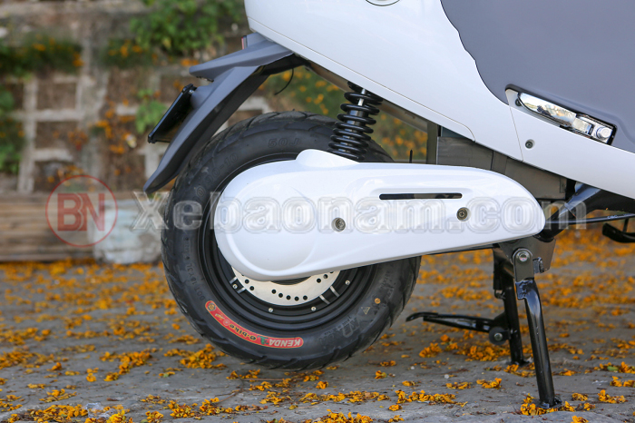 Ở phần đuôi xe máy điện có thiết kế tay nắm khá là lạ mắt với 2 nửa tròn làm từ chất liệu thép cao cấp cực kỳ chắc chắn và cứng cáp. Các đường viền tay nắm đều được bo tròn mềm mại nên thuận tiện cho việc dẫn dắt xe hơn.