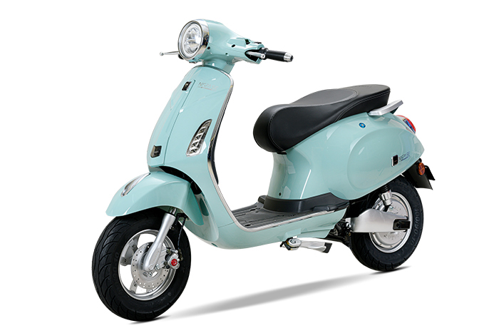 Thân xe điện Vespa Osakar được ví von như hình ảnh thiên nga đậu trên mặt hồ, tĩnh lặng trên mặt nước, phắc họa nên một phong thái rất an nhiên, rất đĩnh đạc mà không kém phần mềm mại, nữ tính.